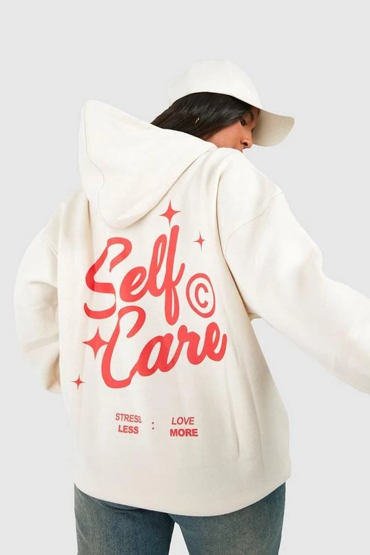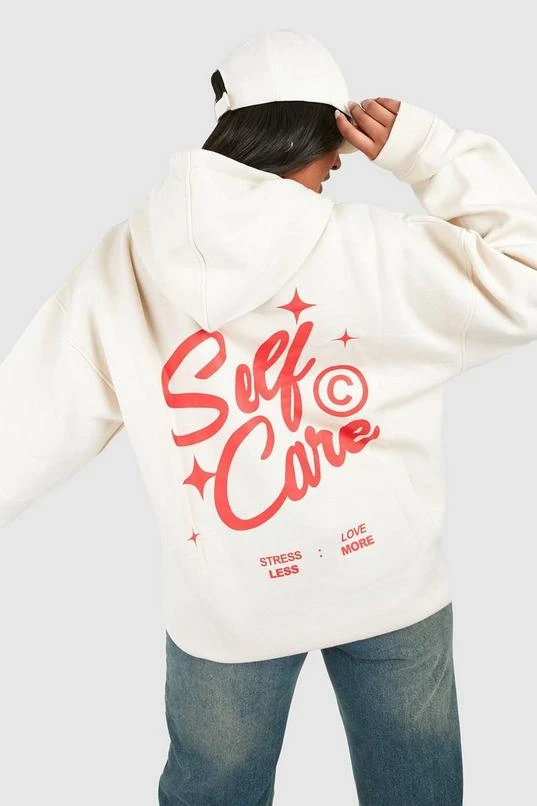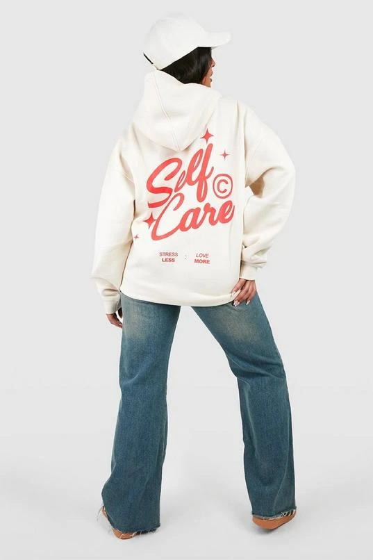 BOOHOO Plus Self Care Slogan Back Print Hoodie