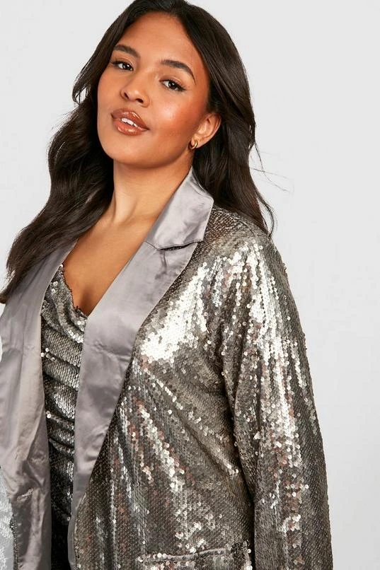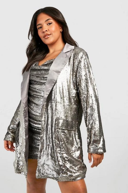 BOOHOO Plus Sequin Blazer & Mini Dress Two-Piece