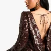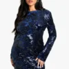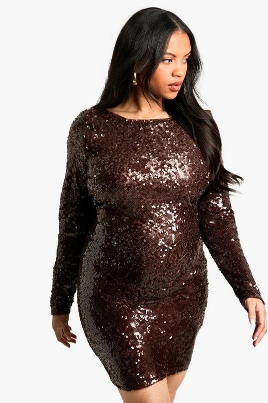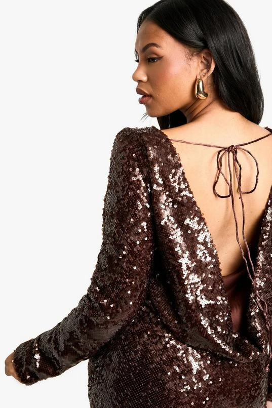 BOOHOO Plus Sequin Cowl Back Long Sleeve Mini Dress