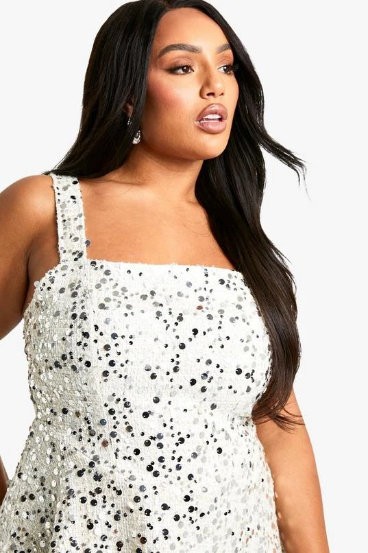BOOHOO Plus Sequin Milkmaid Skater Dress