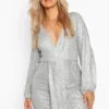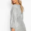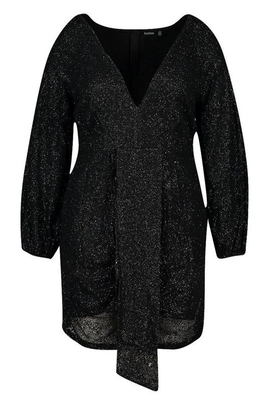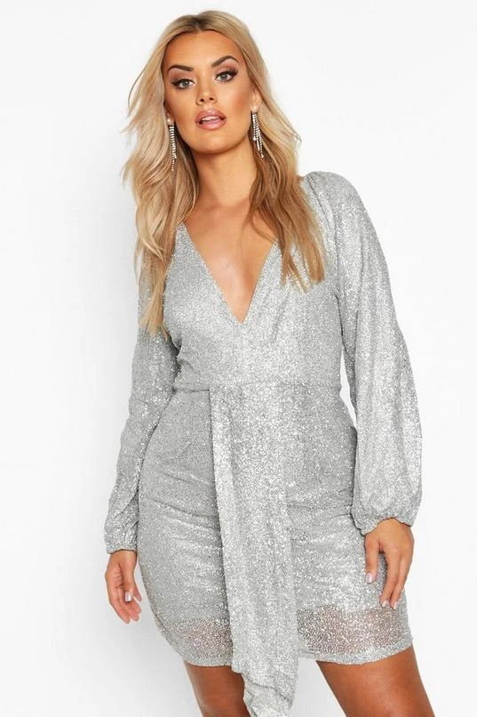 BOOHOO Plus Sequin Plunge Ruched Detail Dress