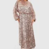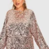 BOOHOO Plus Sequin Puff Sleeve Midi Dress