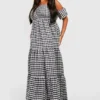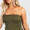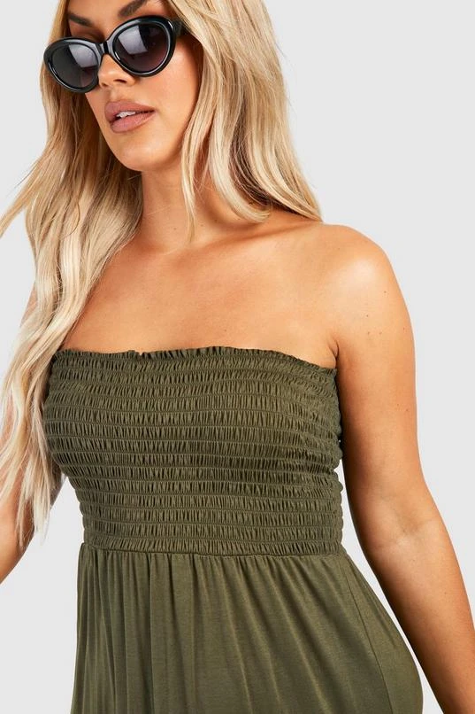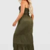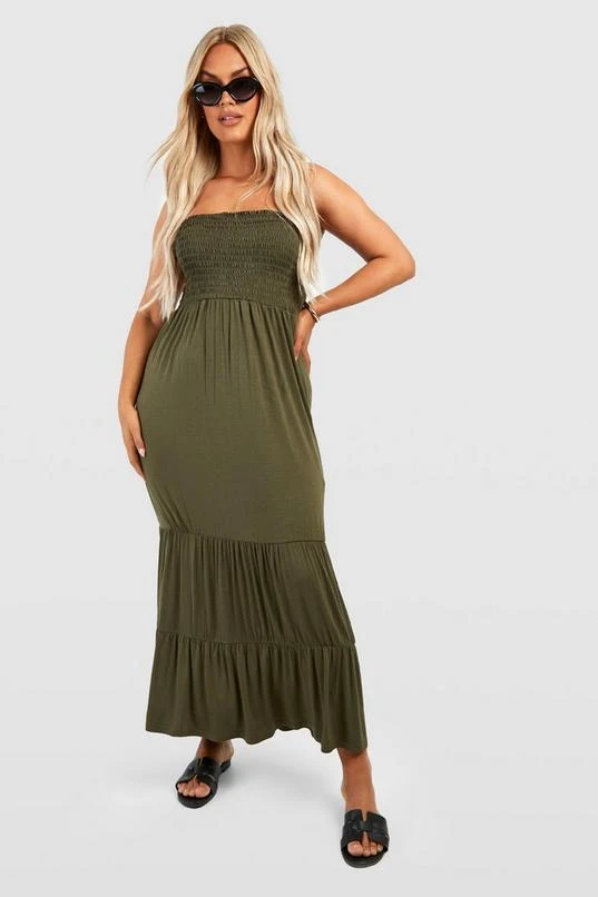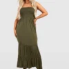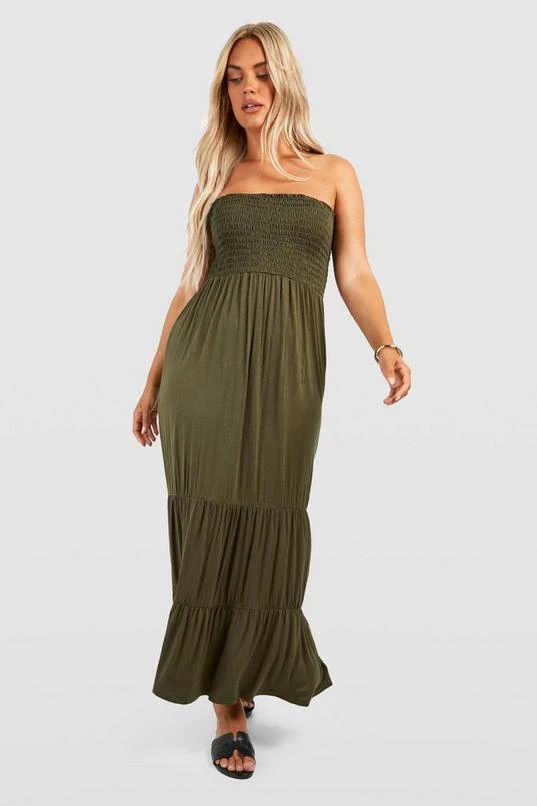 BOOHOO Plus Shirred Bandeau Tiered Maxi Dress