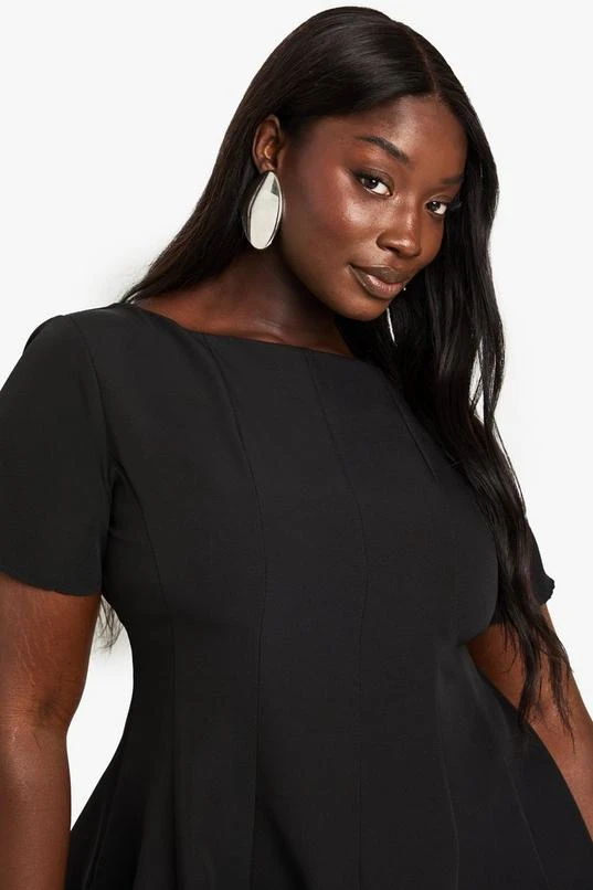 BOOHOO PLUS SHORT SLEEVE PANNELED SKATER DRESS