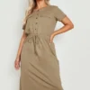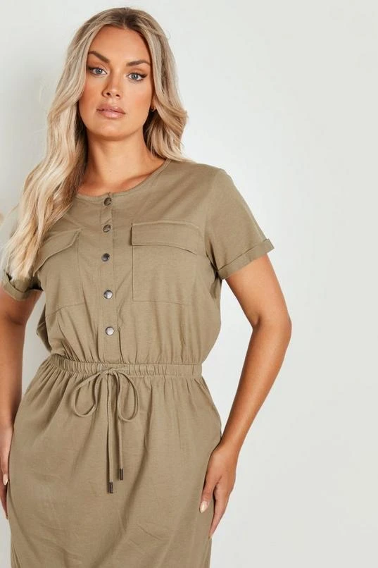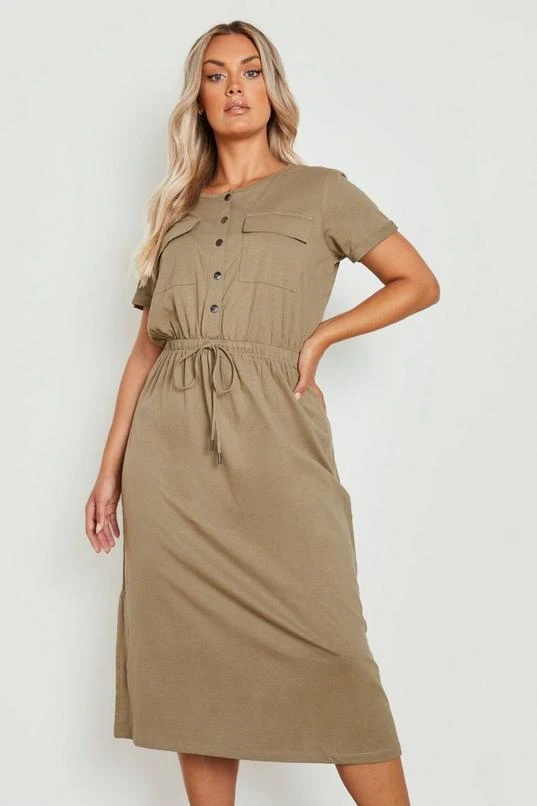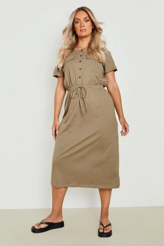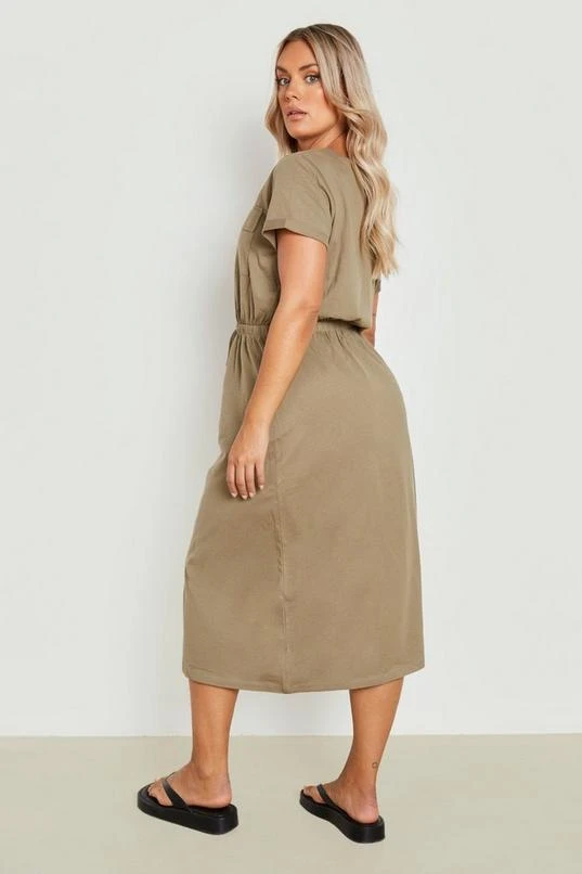 BOOHOO Plus Short Sleeve Tie Waist Midi Dress