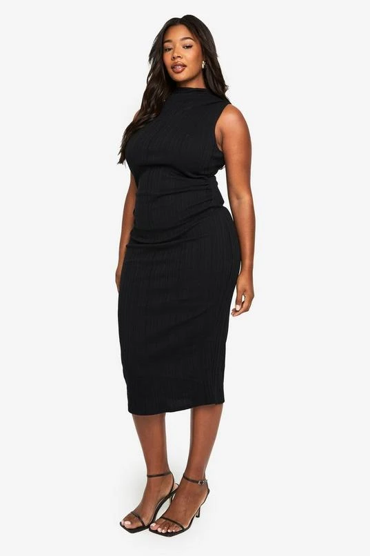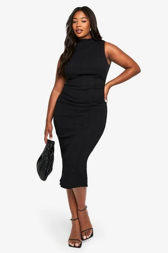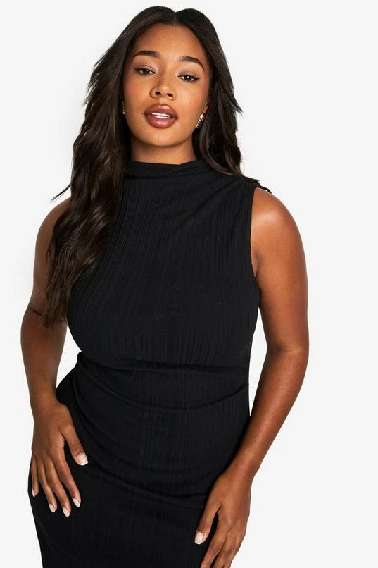 BOOHOO PLUS SLEEVELESS HIGH NECK MIDI DRESS