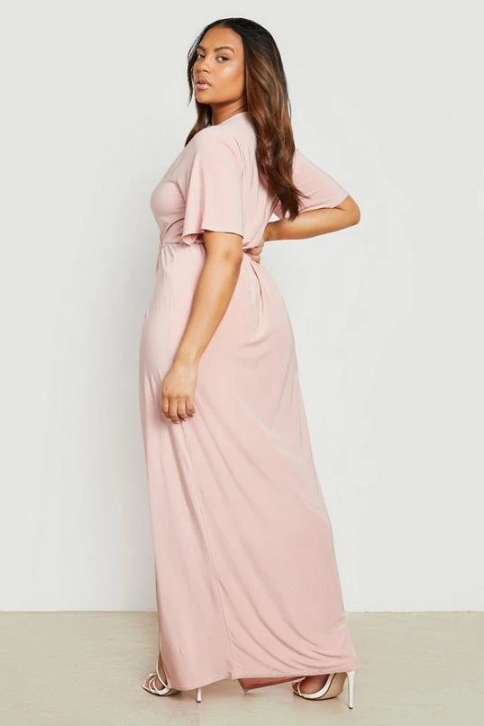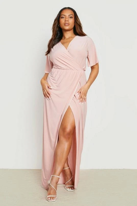 BOOHOO Plus Slinky Angel Sleeve Wrap Maxi Dress