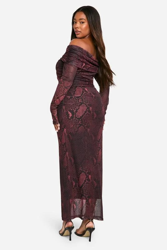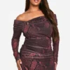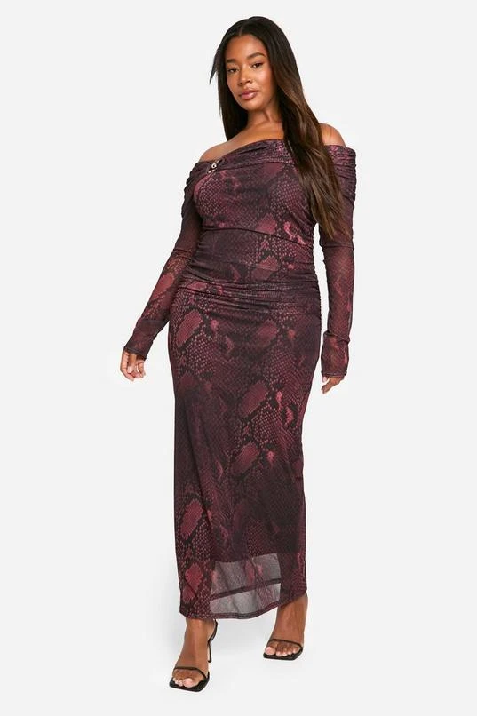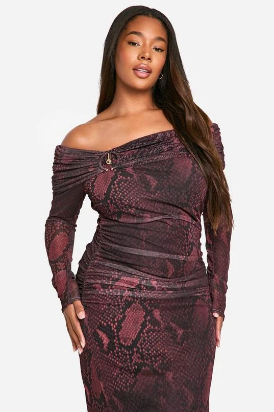 BOOHOO Plus Snake Bardot Ring Detail Midaxi Dress