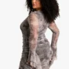 BOOHOO Plus Snake Mesh Flare Cuff Mini Dress
