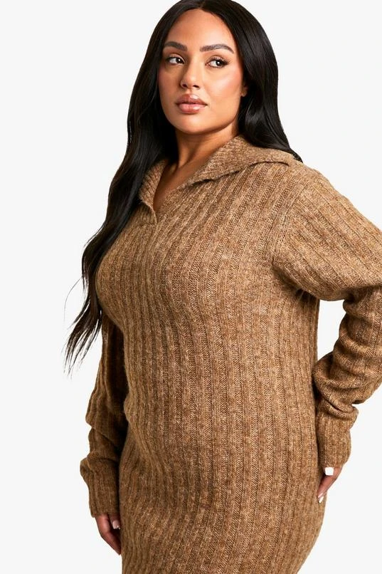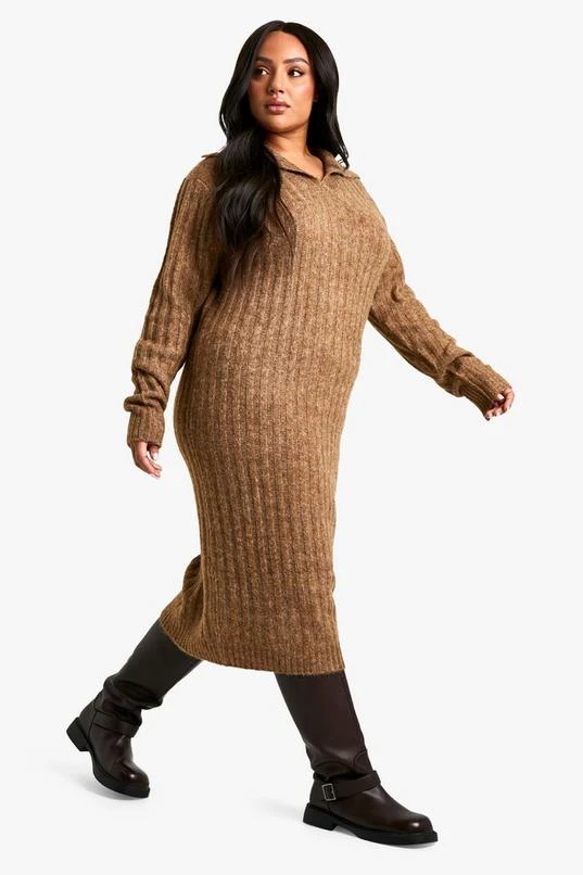 BOOHOO Plus Soft Knit Thick Rib Collar Detail Maxi Dress