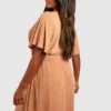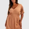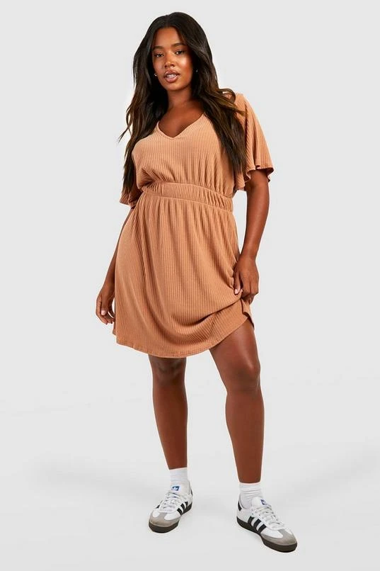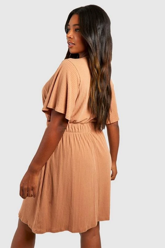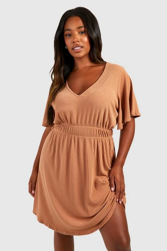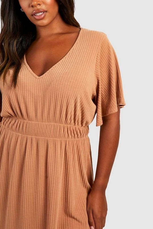 BOOHOO Plus Soft Rib Angel Sleeve Skater Dress
