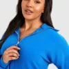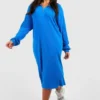 BOOHOO Plus Soft Rib Half Zip Collar Midi Dress