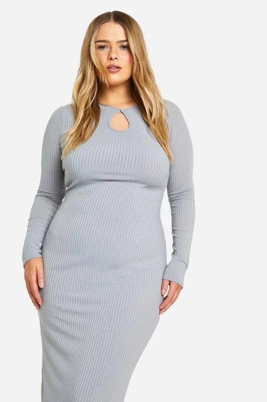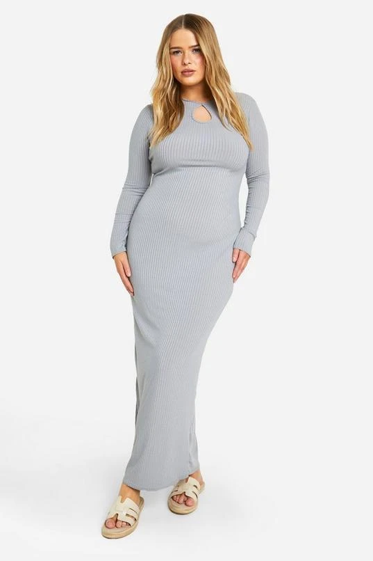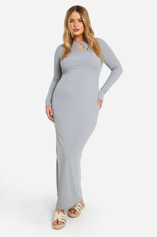 BOOHOO Plus Soft Rib Key Hole Maxi Dress
