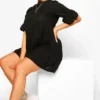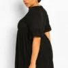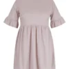BOOHOO Plus Soft Rib Ruffle Smock Dress