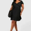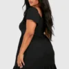 BOOHOO Plus Soft Rib Wrap Tiered Smock Dress