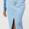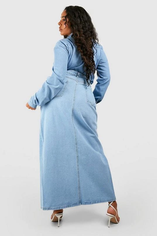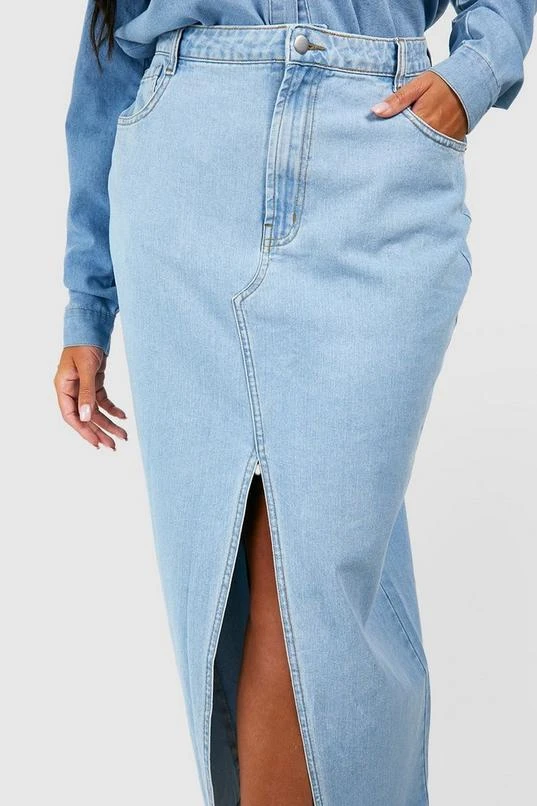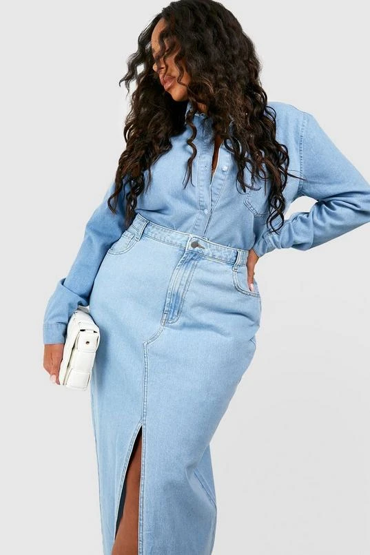 BOOHOO Plus Split Front Denim Maxi Skirt