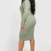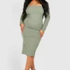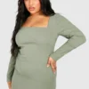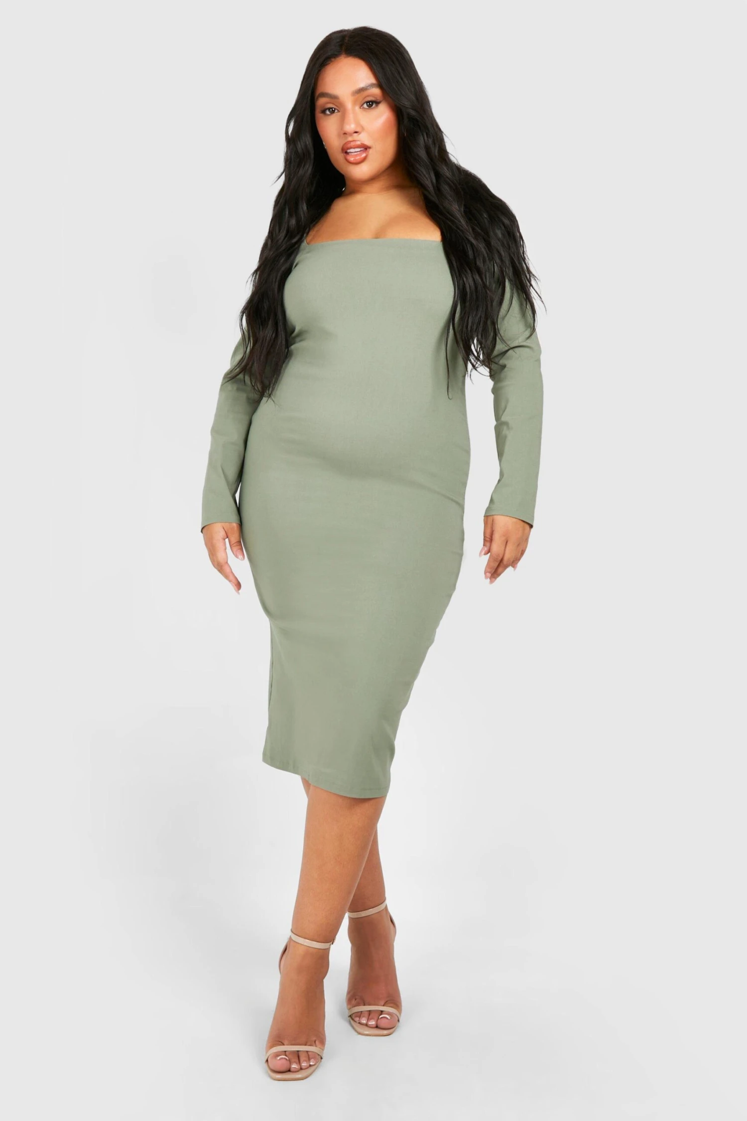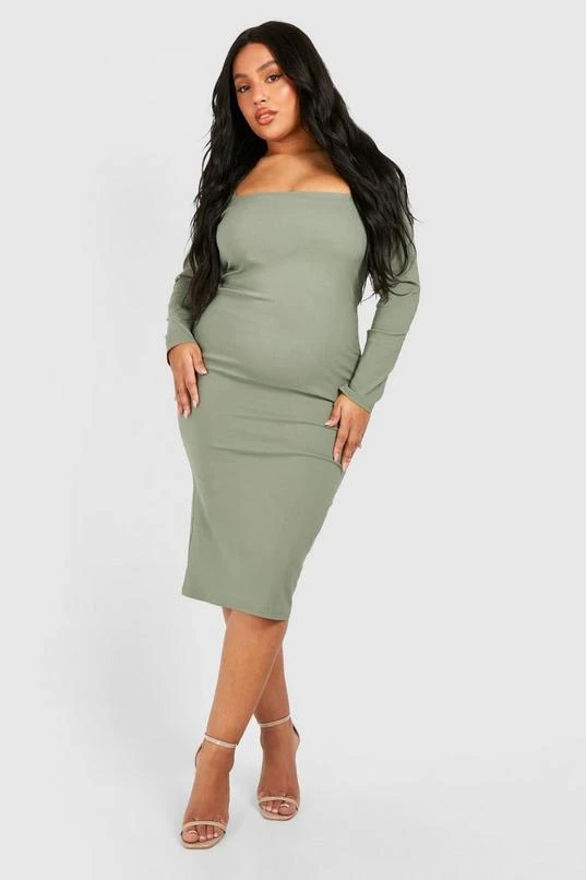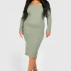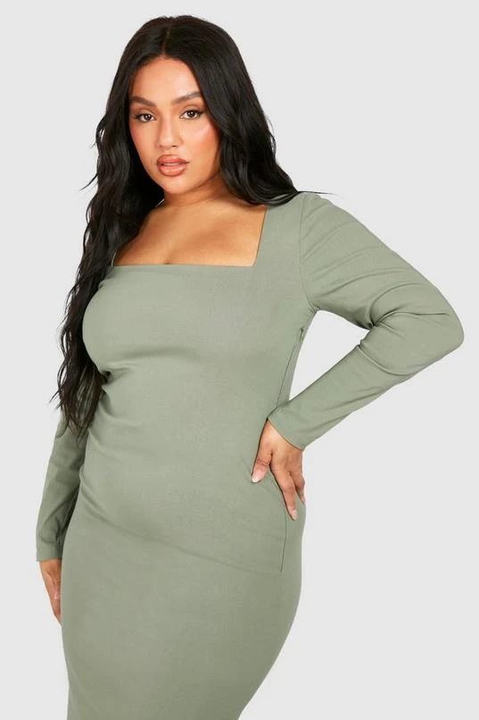 BOOHOO Plus Square Neck Bengaline Midi Dress