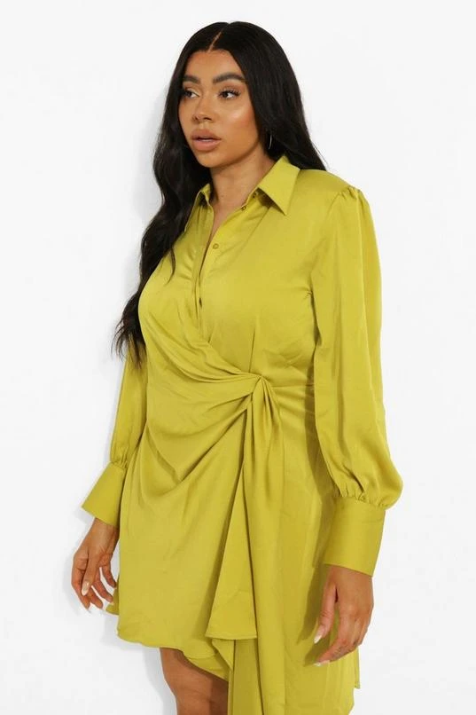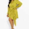 BOOHOO Plus Statement Draped Satin Shirt Dress