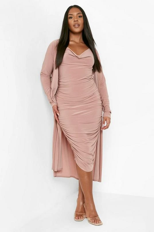 BOOHOO Plus Strappy Cowl Neck Dress & Duster Two-Piece