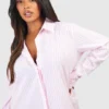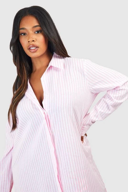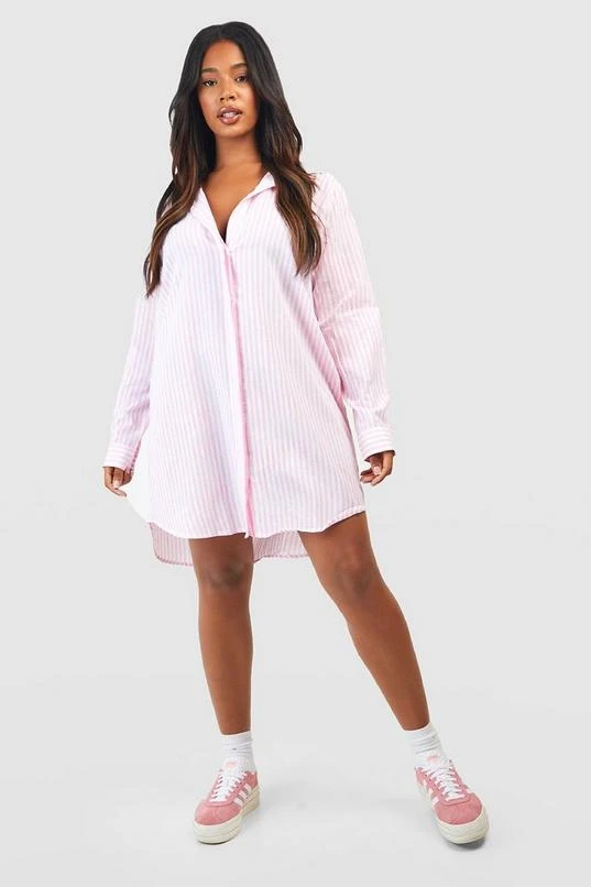 BOOHOO Plus Stripe Cotton Oversized Shirt Dress