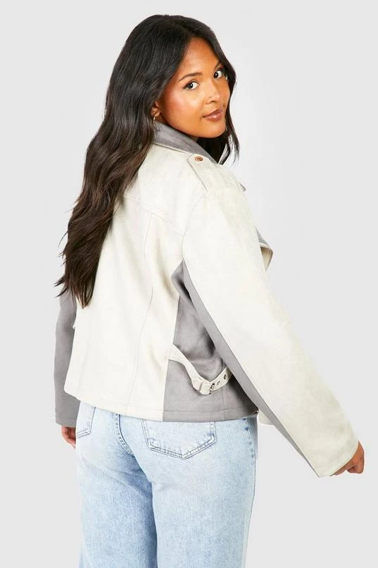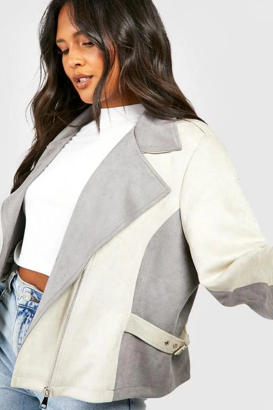 BOOHOO Plus Suede Asymmetric Zip Moto Jacket