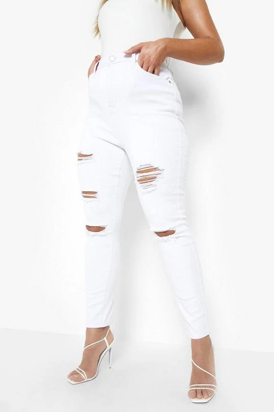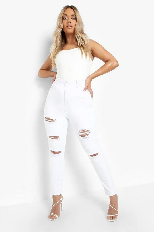 BOOHOO Plus Super Distressed High Waist Skinny Jeans