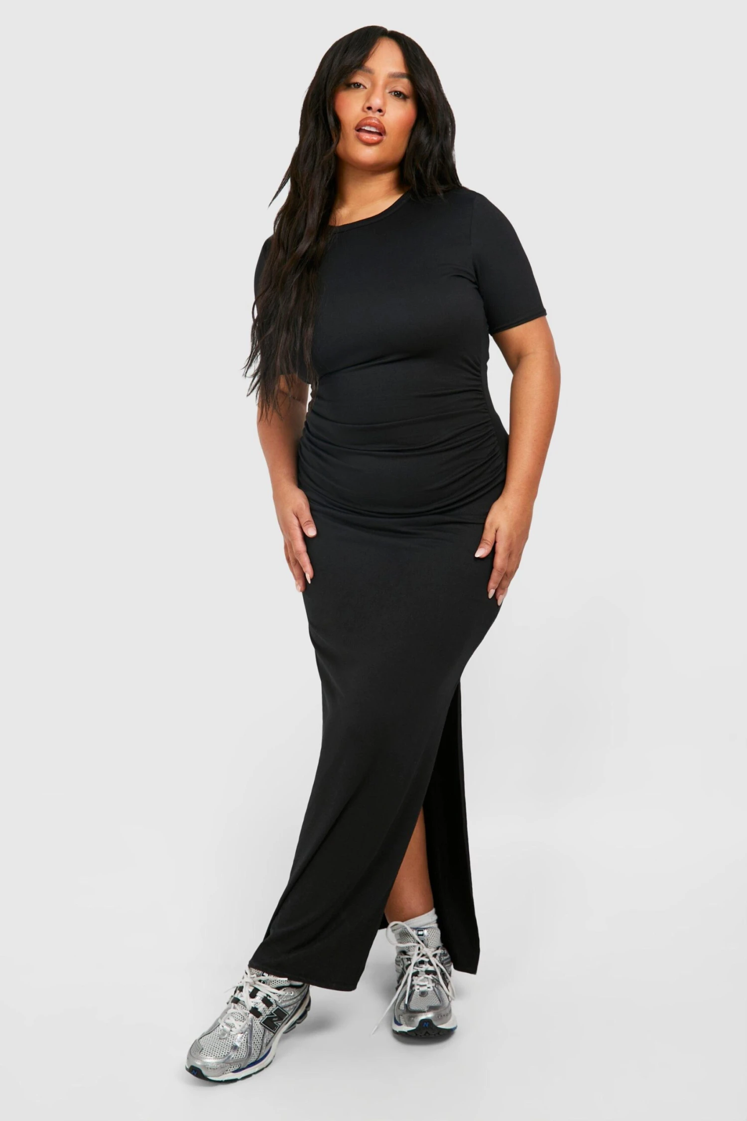 BOOHOO Plus Super Soft Jersey Ruched Split T-shirt Dress