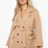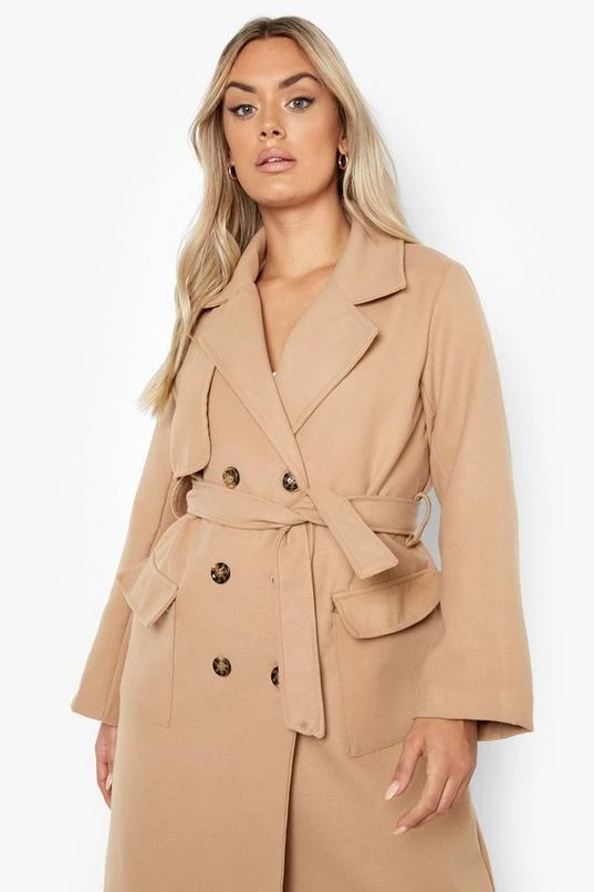 BOOHOO Plus Tailored Self Belted Longline Coat