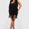 BOOHOO Plus Tassel Belt Detail Slinky Ruched Mini Skirt