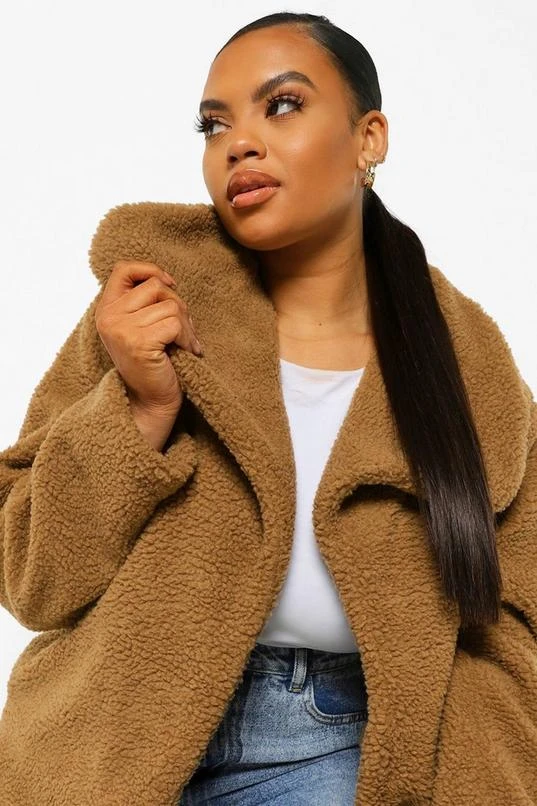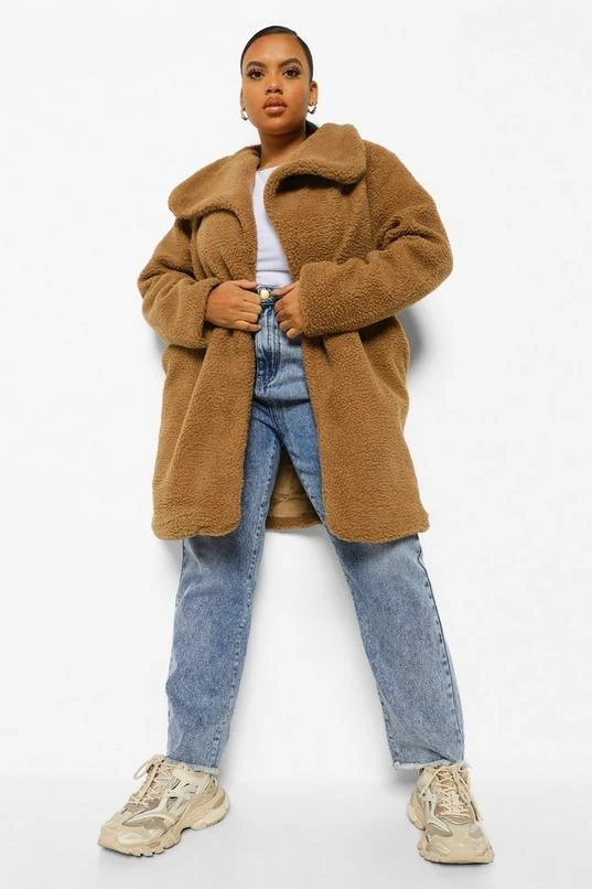 BOOHOO Plus Teddy Faux Fur Midi Coat