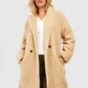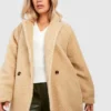 BOOHOO Plus Teddy Fur Double Breasted Coat