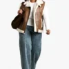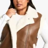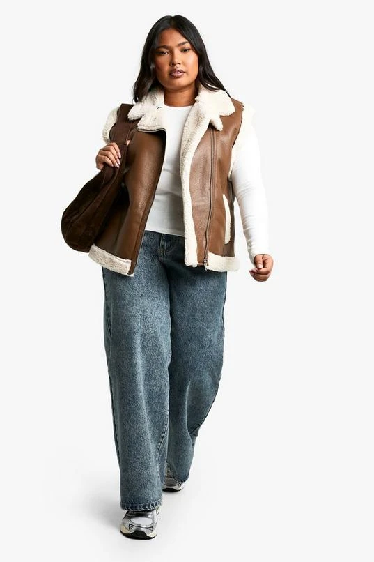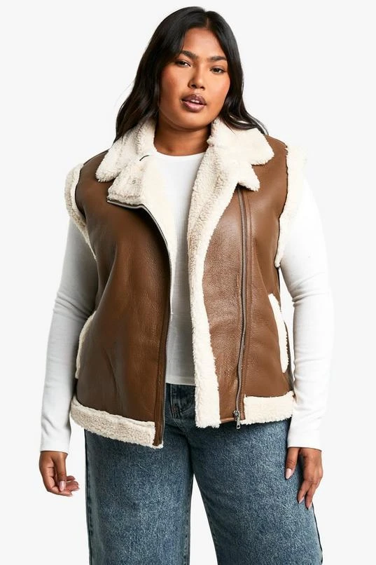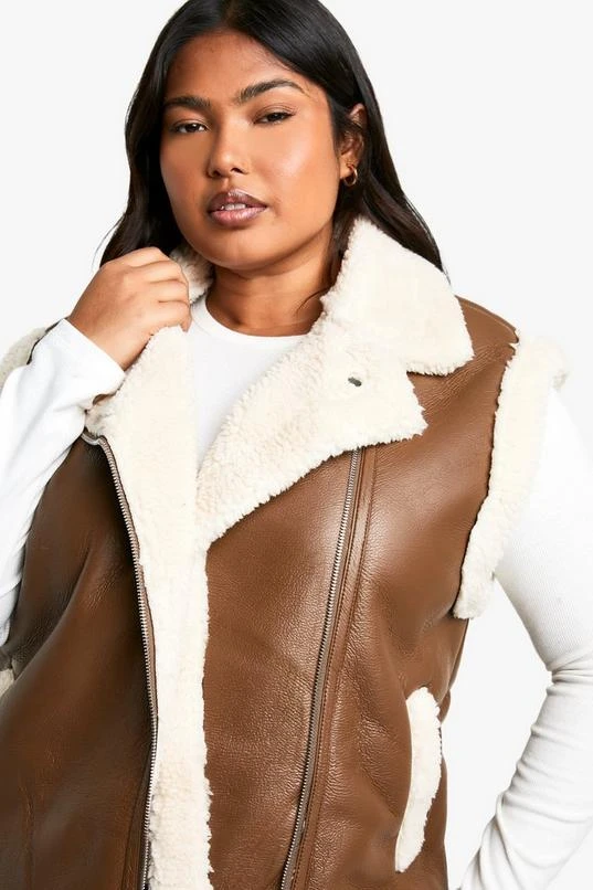 BOOHOO Plus Teddy Trim Faux Leather Vest
