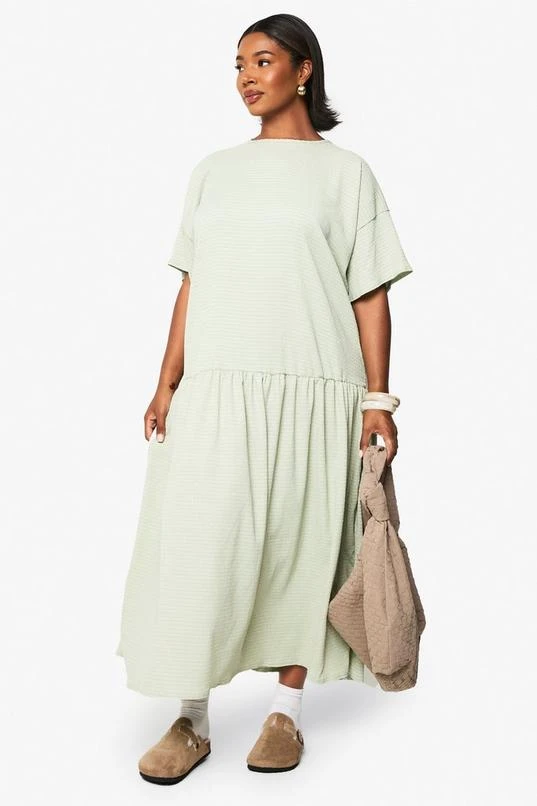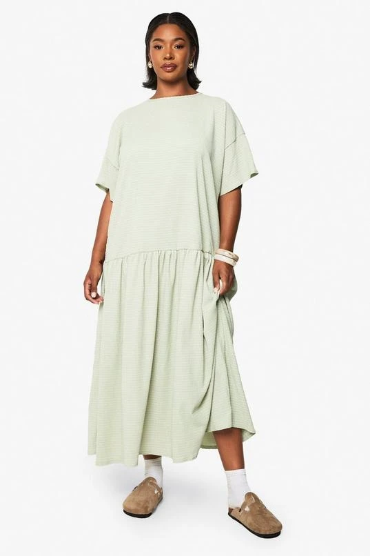 BOOHOO Plus TEXTURED Midaxi Smock Dress