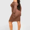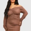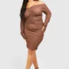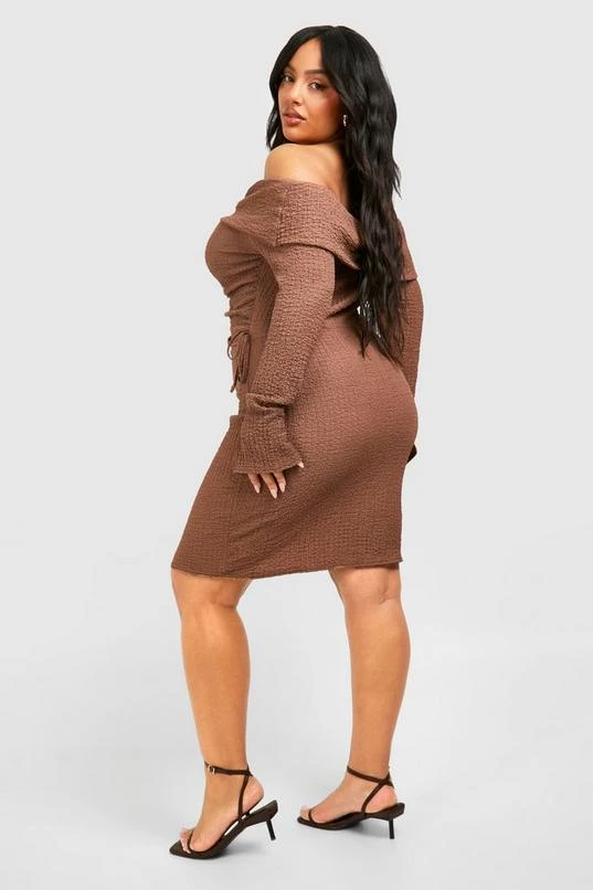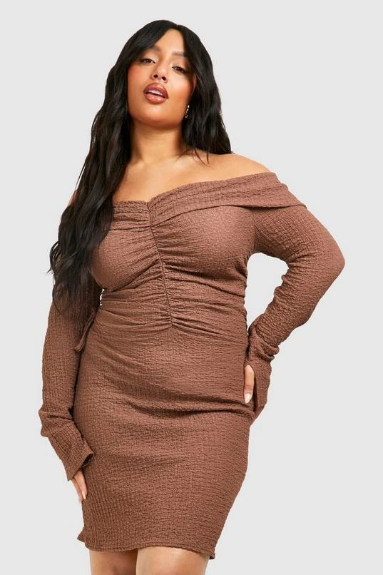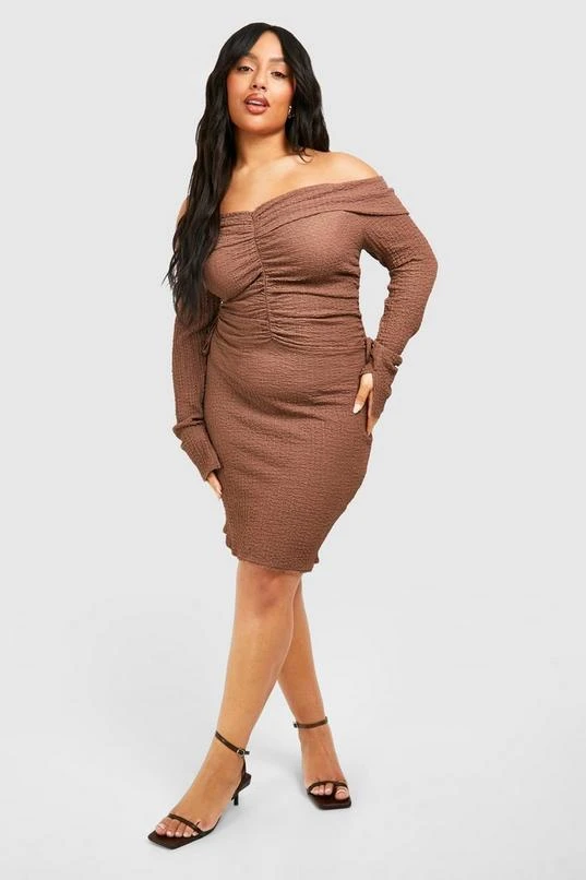 BOOHOO Plus Textured Off Shoulder Ruched Bodycon Dress