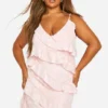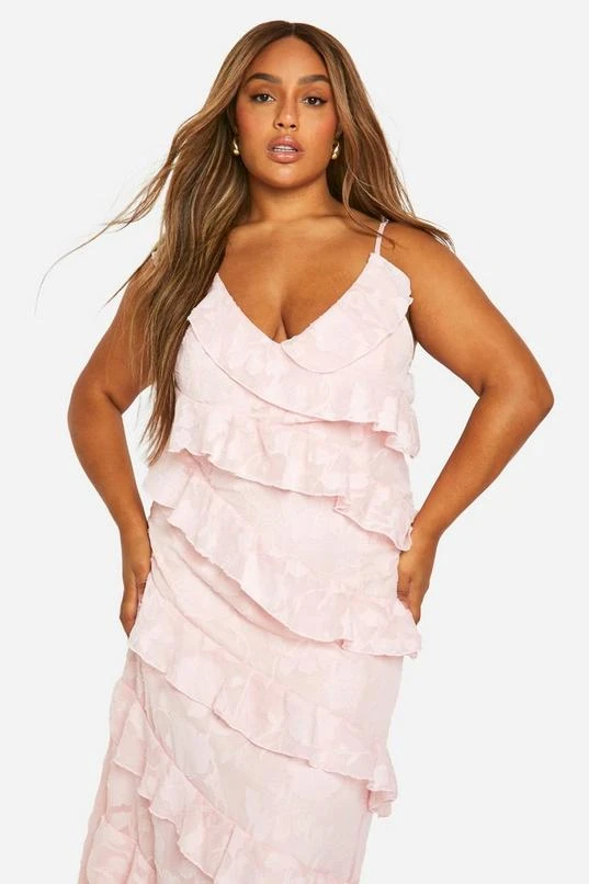 BOOHOO Plus Textured Ruffle Asymmetric Maxi Dress