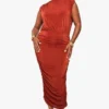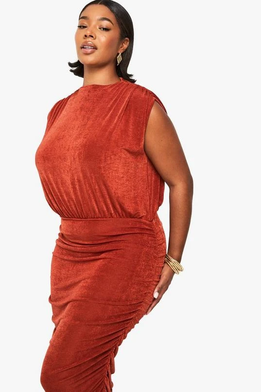 BOOHOO PLUS TEXTURED SLINKY ROUCHED MIDAXI DRESS
