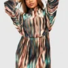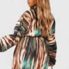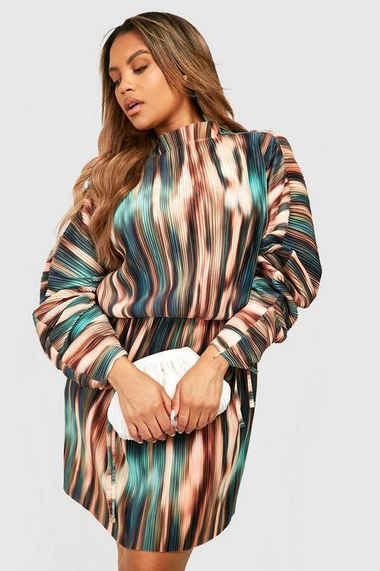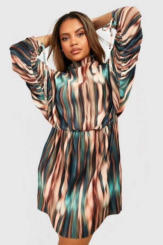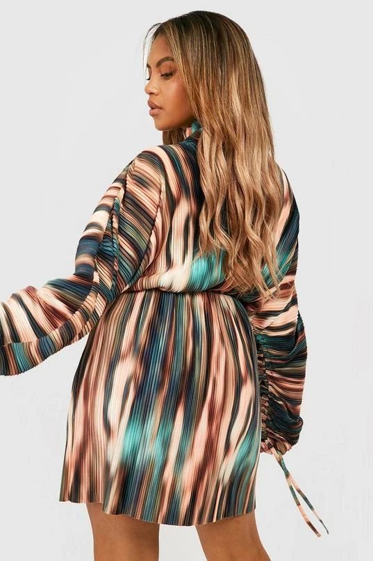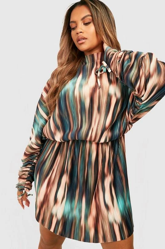 BOOHOO Plus Tie Dye Plisse Ruched Sleeve Dress