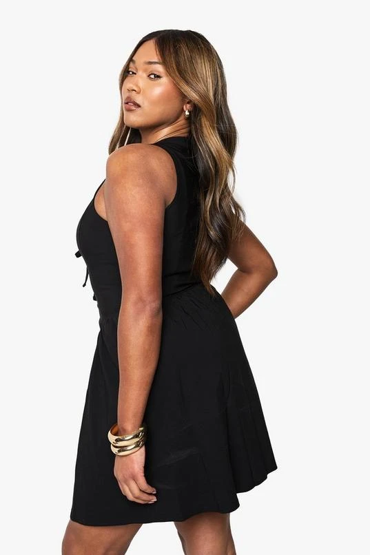 BOOHOO Plus Tie Front Skater Dress
