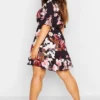 BOOHOO Plus Tiered Floral Crepe Smock Dress