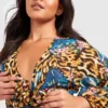 BOOHOO Plus Tropical Animal Beach Romper