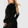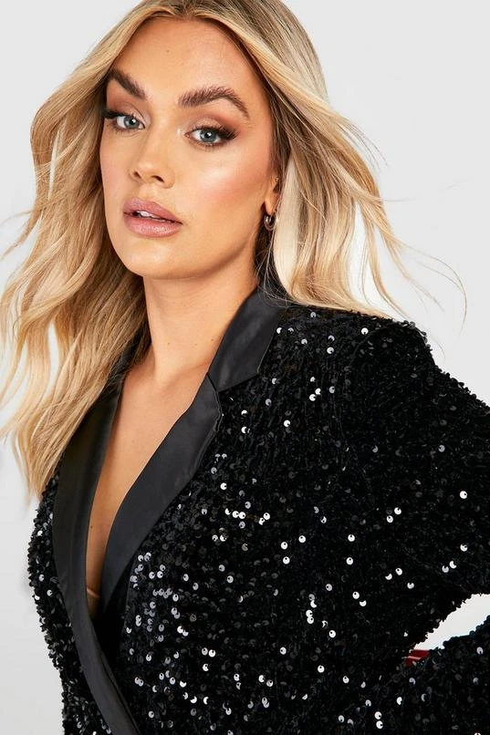 BOOHOO Plus Velvet Sequin Wrap Blazer Dress