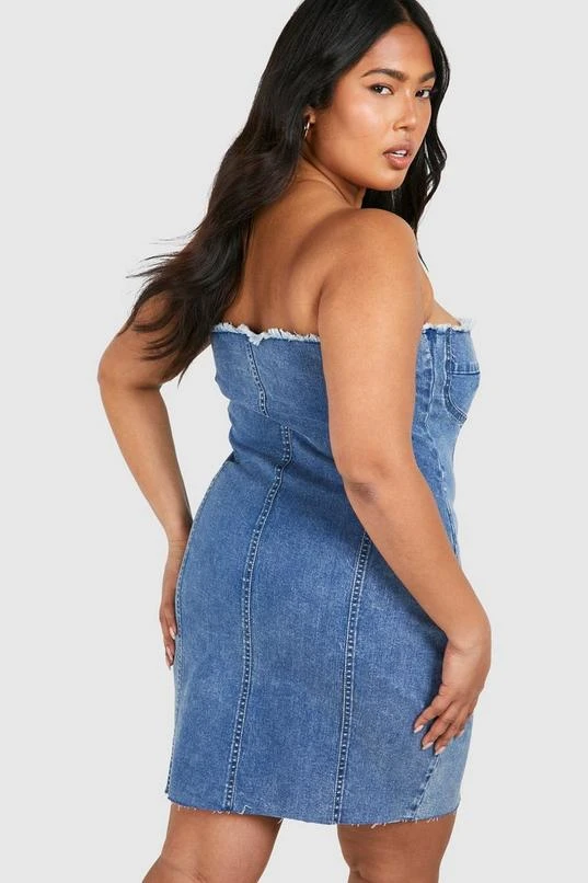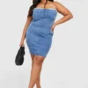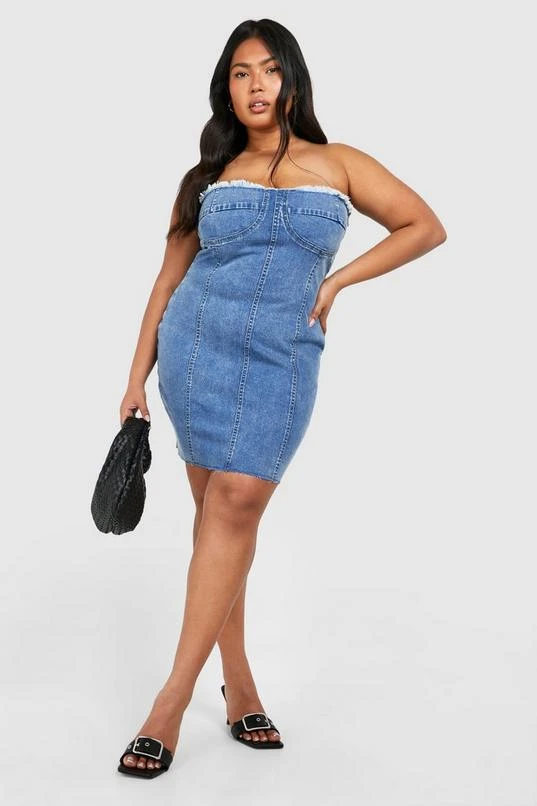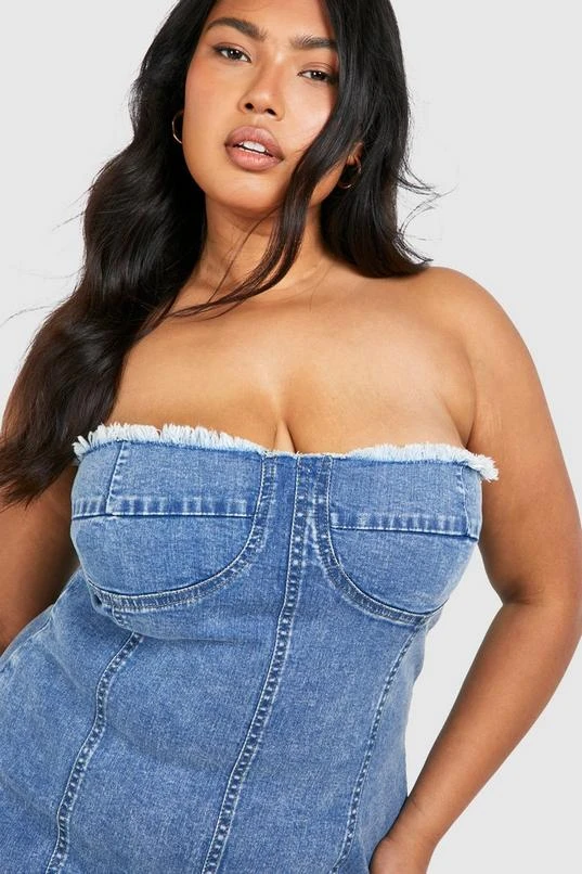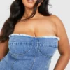 BOOHOO Plus Washed Bandeau Denim Dress