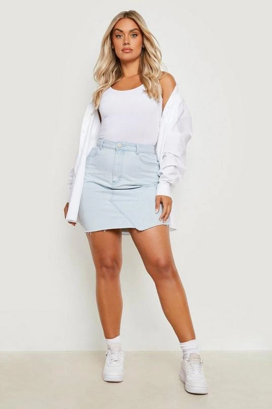BOOHOO Plus Washed Dipped Hem Denim Skirt