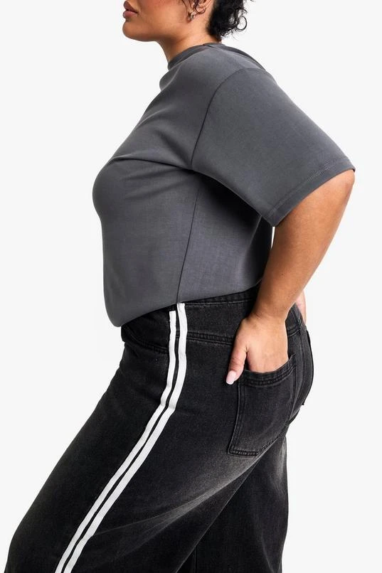 BOOHOO Plus Washed Side Stripe Wide Leg Jean