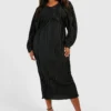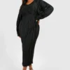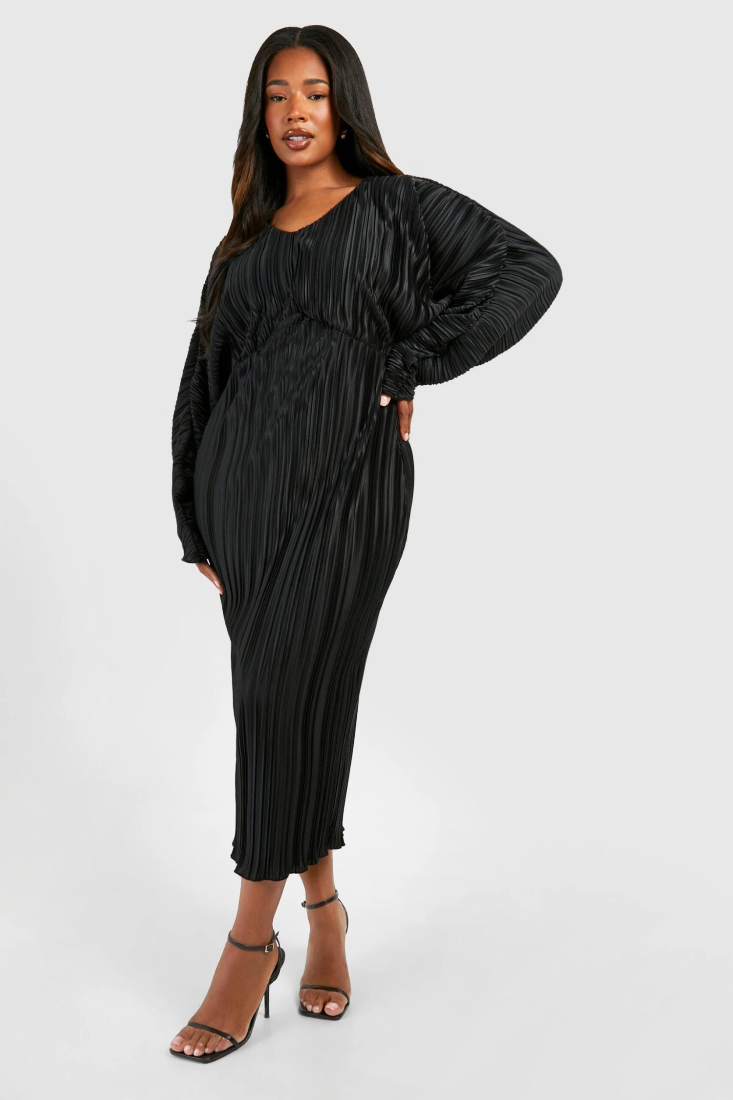 BOOHOO Plus Wide Plisse Batwing Midaxi Dress