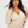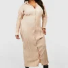 BOOHOO Plus Wide Plisse Midi Shirt Dress