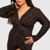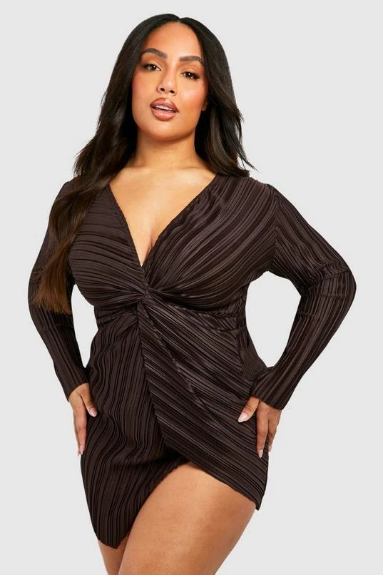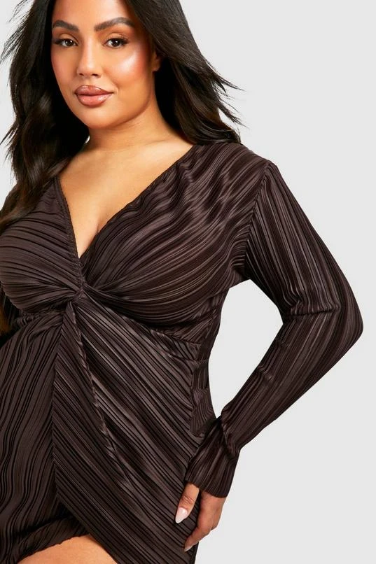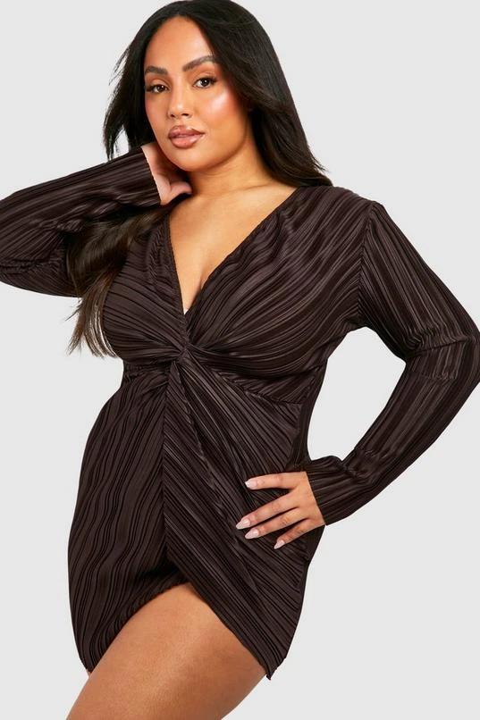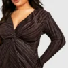 BOOHOO Plus Wide Plisse Twist Front Wrap Dress