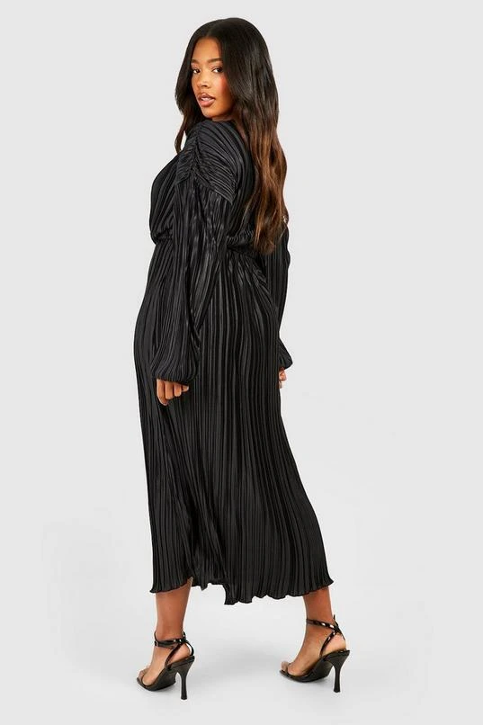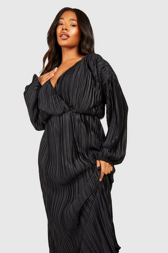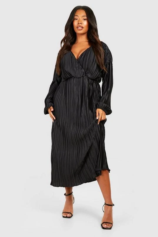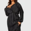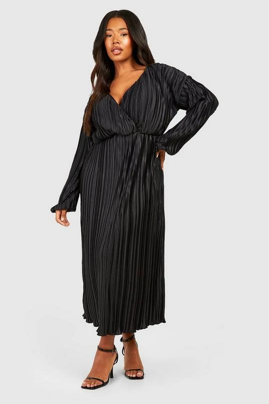 BOOHOO Plus Wide Plisse Wrap Midi Dress