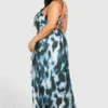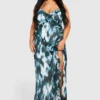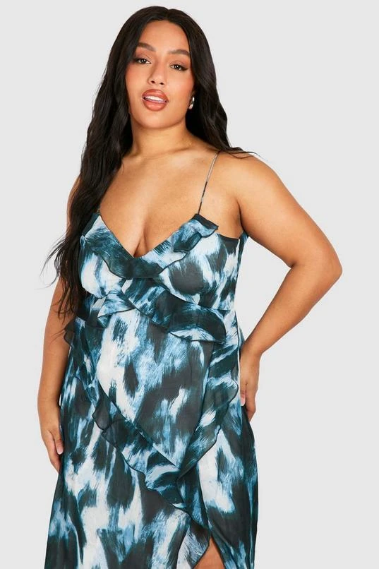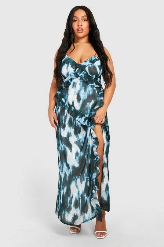 BOOHOO Plus Woven Abstract Print Ruffle Detail Strappy Maxi Dress