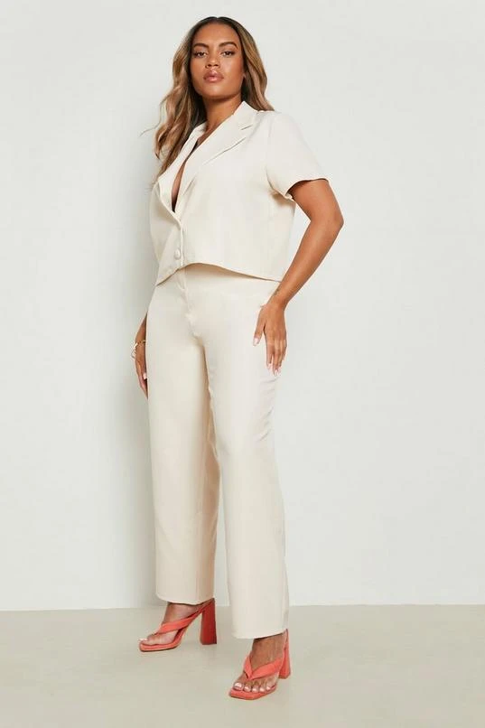 BOOHOO Plus Woven Cropped Blazer & Pants Two-Piece
